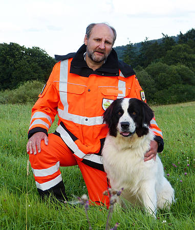| Mantrailing (englische Übersetzung Mensch verfolgen) ist die Personensuche unter Einsatz von speziell ausgebildeten Rettungshunden, die Mantrailer oder Personenspürhunde genannt werden. Dabei wird der hervorragende Geruchssinn der Hunde ausgenutzt. Der Hund wird dabei an dem Ort, an dem sich der Ver- misste zuletzt mit Sicherheit aufgehalten hat, „angesetzt“, d.h. er nimmt anhand eines Geruchsgegenstandes dieser ganz bestimmten Person (z. B. einem Taschentuch, oder Kleidungsstück) deren Individualgeruch auf und sucht die „Geruchspartikel“ dieser Person auf bzw. an dem vom Vermissten zurückgelegten Weg (= Trail) bis zum Ziel. Das Ziel kann der Vermisste sein, aber auch das Ende des Trails, weil der Vermisste z. B. ein Verkehrsmittel benutzt hat. Der Hund stöbert bei dieser Arbeit nicht frei, sondern führt seinen Hundeführer an langer Leine zum Ziel. |
